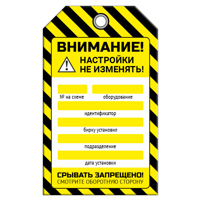 Бирка «НАСТРОЙКИ НЕ ИЗМЕНЯТЬ!» (1 шт., двусторонняя, пластик, 70х115 мм) в Хотьково купить