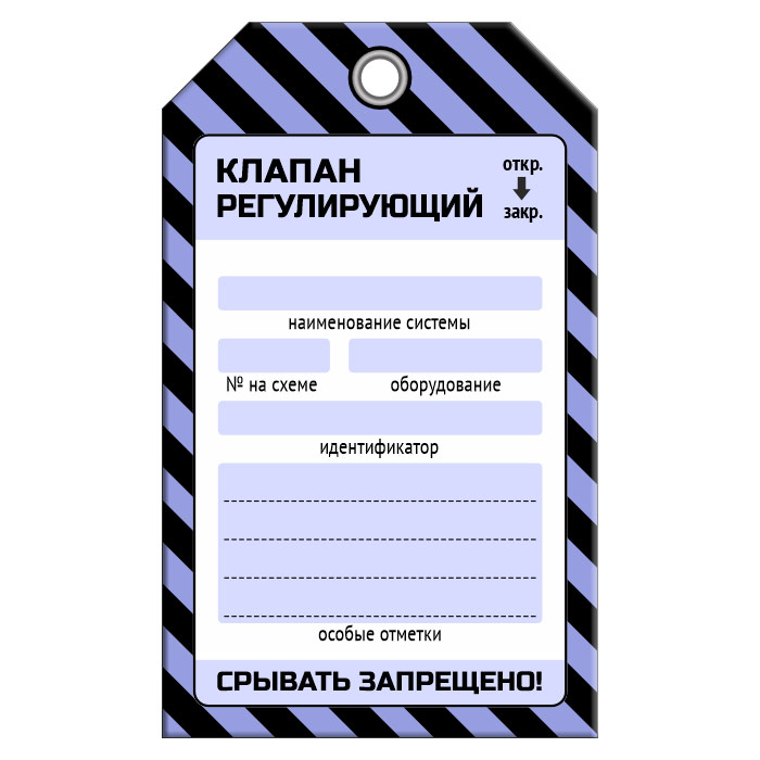 Бирка «КЛАПАН РЕГУЛИРУЮЩИЙ» (1 шт., односторонняя, пластик, 70х115 мм) в Хотьково купить