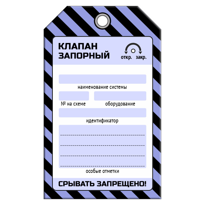 Бирка «КЛАПАН ЗАПОРНЫЙ» (1 шт., односторонняя, пластик, 70х115 мм) в Хотьково купить