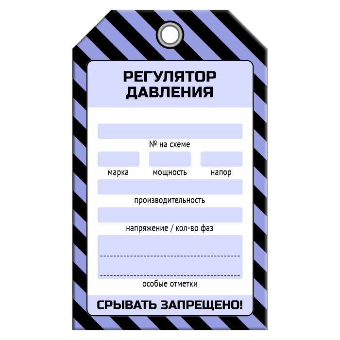 Бирка «РЕГУЛЯТОР ДАВЛЕНИЯ» (1 шт., односторонняя, пластик, 70х115 мм) в Хотьково купить