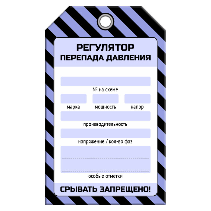 Бирка «РЕГУЛЯТОР ПЕРЕПАДА ДАВЛЕНИЯ» (1 шт., односторонняя, пластик, 70х115 мм) в Хотьково купить