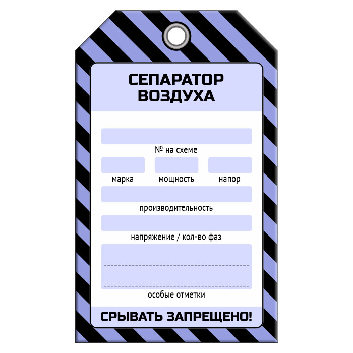 Бирка «СЕПАРАТОР ВОЗДУХА» (1 шт., односторонняя, пластик, 70х115 мм) в Хотьково купить