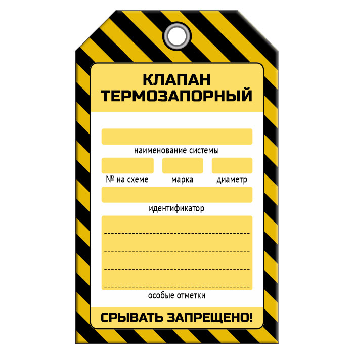 Бирка «КЛАПАН ТЕРМОЗАПОРНЫЙ» (1 шт., односторонняя, пластик, 70х115 мм) в Хотьково купить
