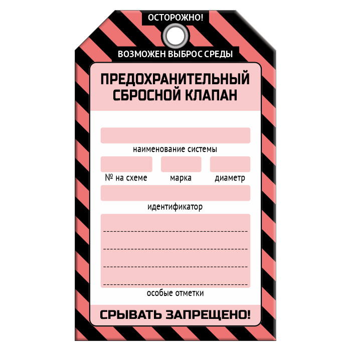Бирка «ПРЕДОХРАНИТЕЛЬНЫЙ СБРОСНОЙ КЛАПАН» (1 шт., односторонняя, пластик, 70х115 мм) в Хотьково купить