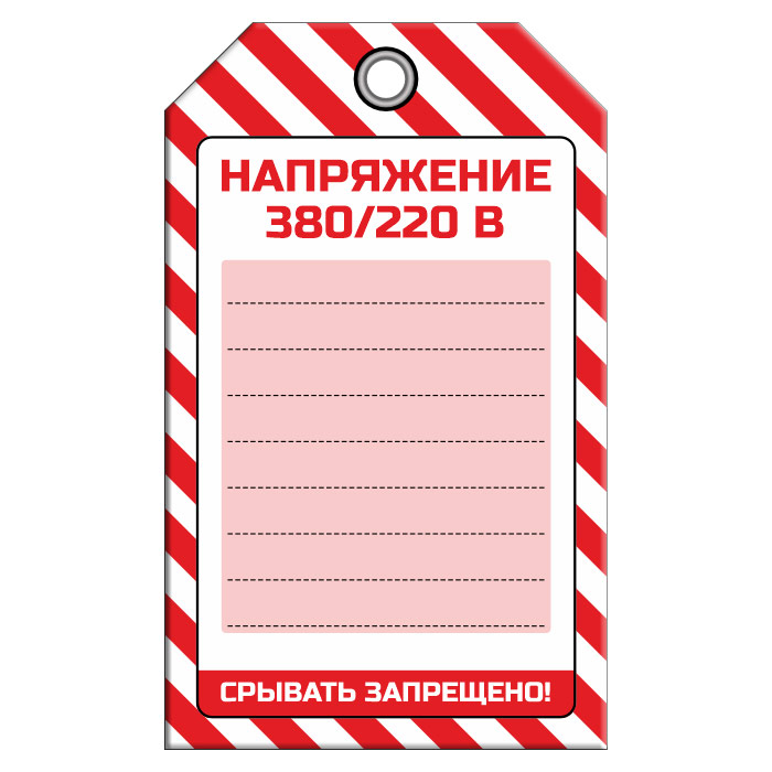 Бирка «НАПРЯЖЕНИЕ 380/220 В» (1 шт., односторонняя, пластик, 70х115 мм) в Хотьково купить