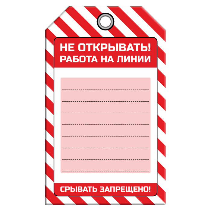 Бирка «НЕ ОТКРЫВАТЬ! РАБОТА НА ЛИНИИ» (1 шт., односторонняя, пластик, 70х115 мм) в Хотьково купить