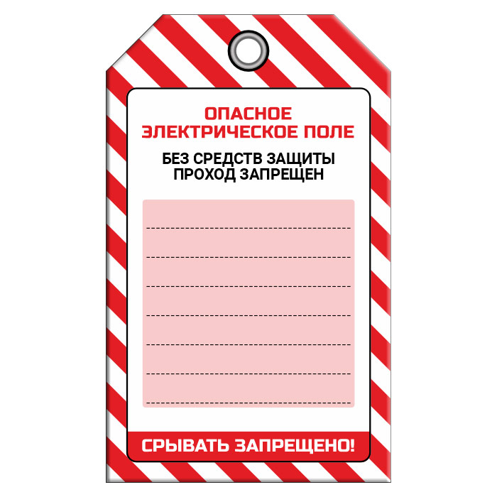 Бирка «ОПАСНОЕ ЭЛЕКТРИЧЕСКОЕ ПОЛЕ» (1 шт., односторонняя, пластик, 70х115 мм) в Хотьково купить