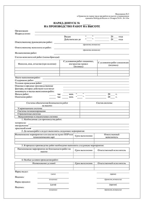 Наряд-допуск на производство работ на высоте (упаковка из 100 штук) в Хотьково купить