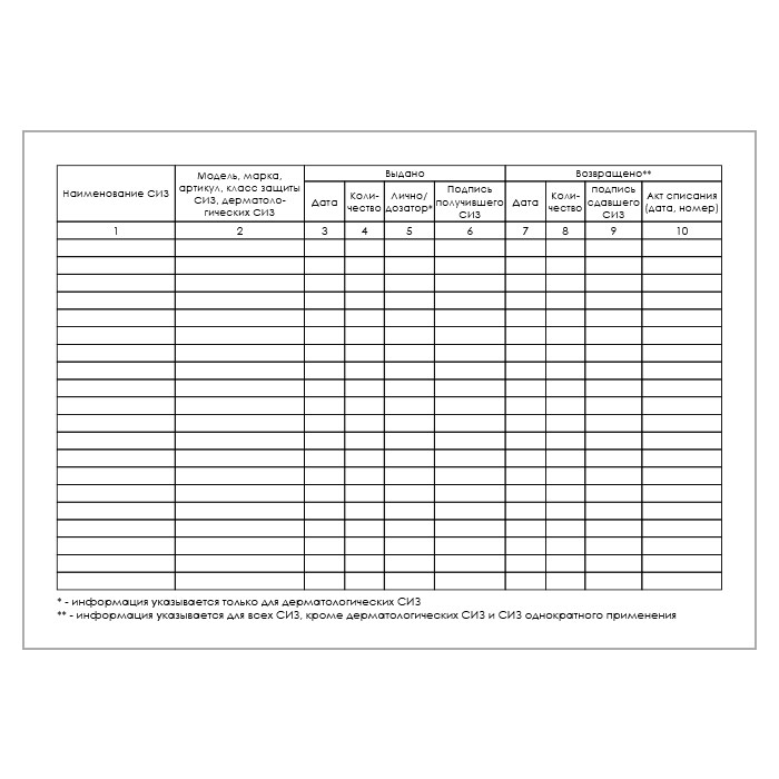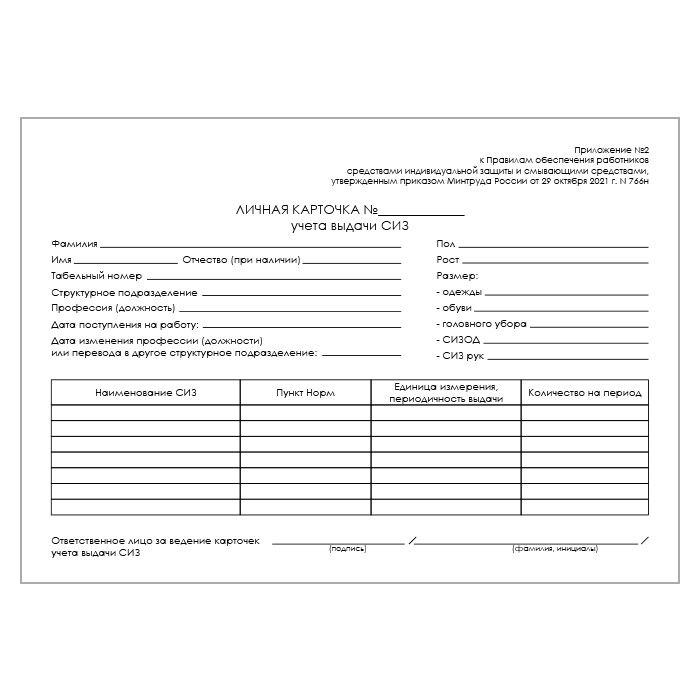 Карточка выдачи СИЗ (приказ Минтруда России от 29 октября 2021 г. №766н, упаковка 100 штук) в Хотьково купить