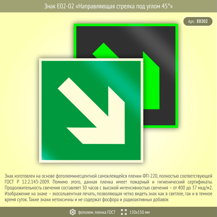 Знак E02-02 «Направляющая стрелка под углом 45°» (фотолюминесцентная пленка ГОСТ 34428-2018, 150х150 мм) в Хотьково купить