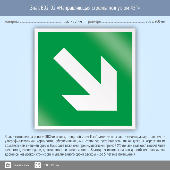 Знак E02-02 «Направляющая стрелка под углом 45°» (пластик, 200х200 мм) в Хотьково купить