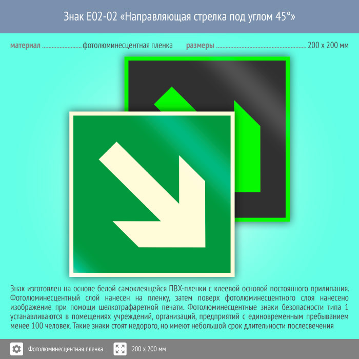 Знак E02-02 «Направляющая стрелка под углом 45°» (фотолюминесцентная пленка, 200х200 мм) в Хотьково купить