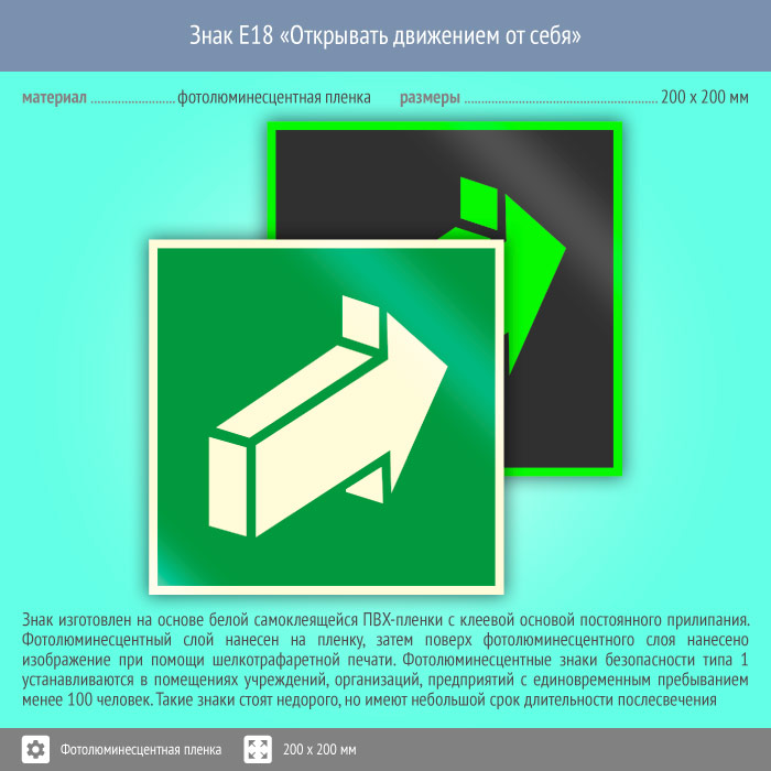 Знак E18 «Открывать движением от себя» (фотолюминесцентная пленка, 200х200 мм) в Хотьково купить
