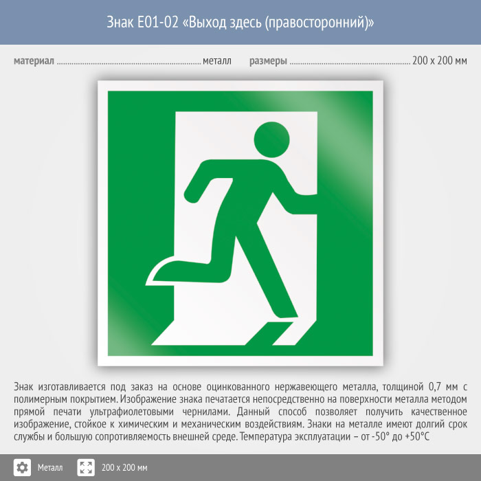 Знак E01-02 «Выход здесь (правосторонний)» (металл, 200х200 мм) в Хотьково купить
