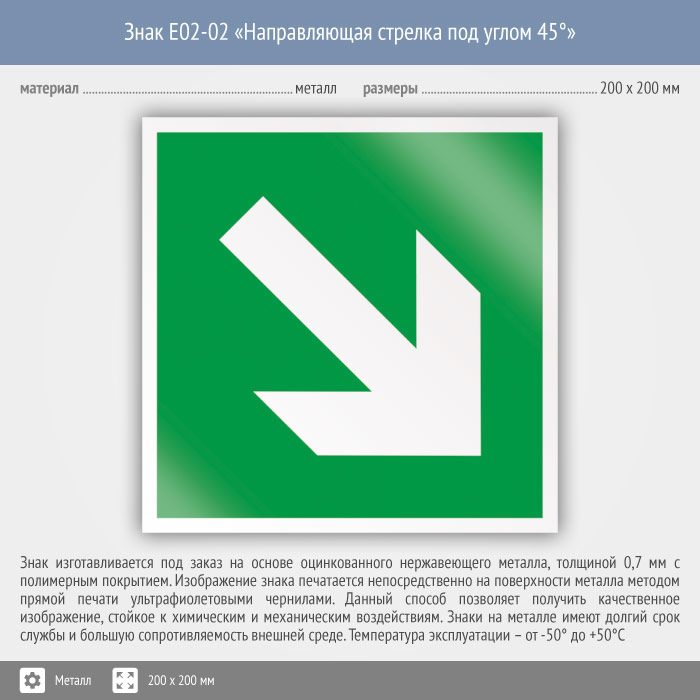 Знак E02-02 «Направляющая стрелка под углом 45°» (металл, 200х200 мм) в Хотьково купить