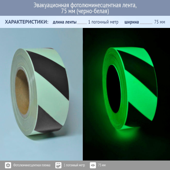 Эвакуационная фотолюминесцентная лента, 75 мм (черно-белая) в Хотьково купить