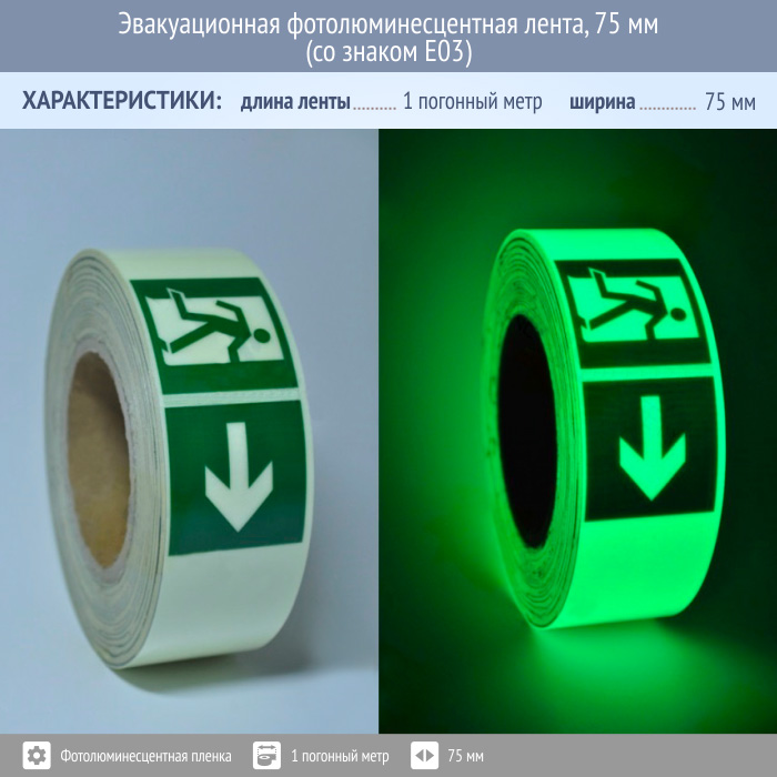 Эвакуационная фотолюминесцентная лента, 75 мм (со знаком E03) в Хотьково купить