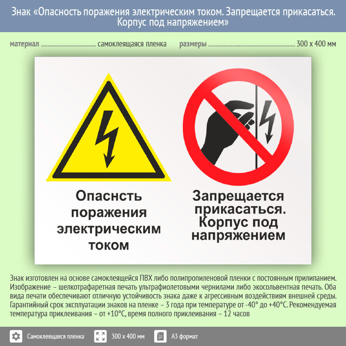 Знак «Опасность поражения электрическим током. Запрещается прикасаться. Корпус под напряжением», КЗ-47 (пленка, 400х300 мм) в Хотьково купить