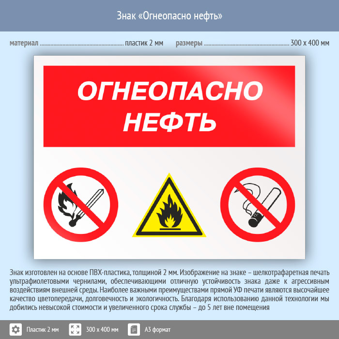 Знак «Огнеопасно нефть», КЗ-31 (пластик, 400х300 мм) в Хотьково купить