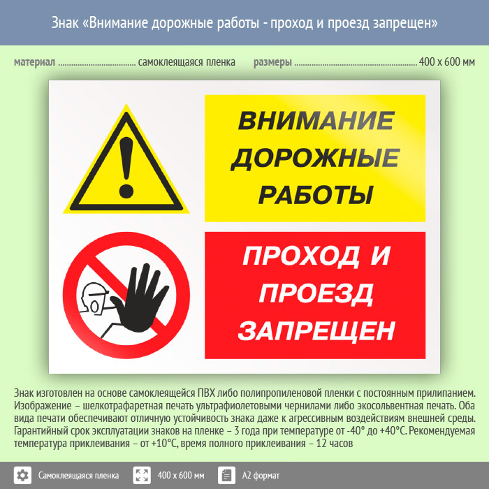 Знак «Внимание дорожные работы - проход и проезд запрещен», КЗ-14 (пленка, 600х400 мм) в Хотьково купить