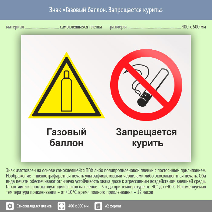 Знак «Газовый баллон. Запрещается курить», КЗ-18 (пленка, 600х400 мм) в Хотьково купить