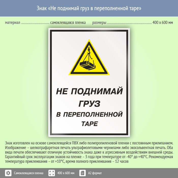 Знак «Не поднимай груз в переполненной таре», КЗ-26 (пленка, 400х600 мм) в Хотьково купить