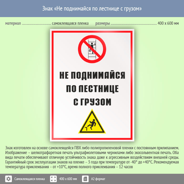 Знак «Не поднимайся по лестнице с грузом», КЗ-28 (пленка, 400х600 мм) в Хотьково купить