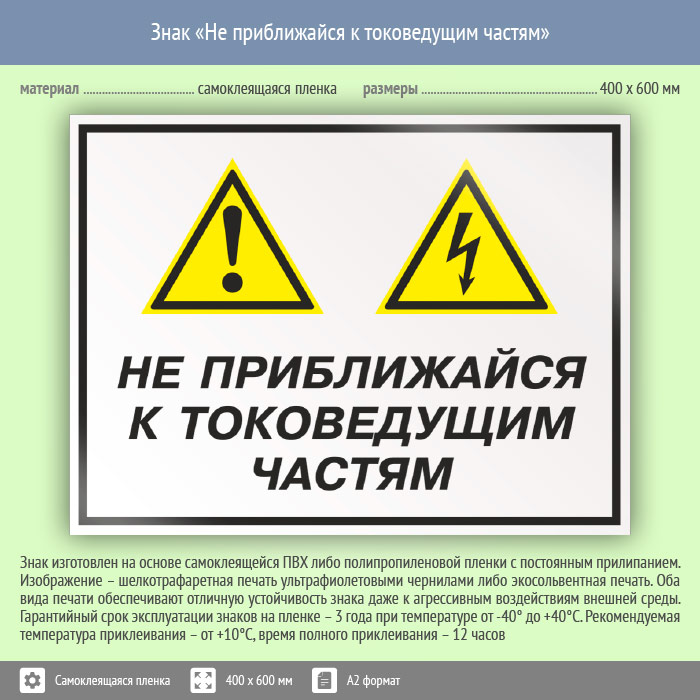 Знак «Не приближайся к токоведущим частям», КЗ-29 (пленка, 600х400 мм) в Хотьково купить