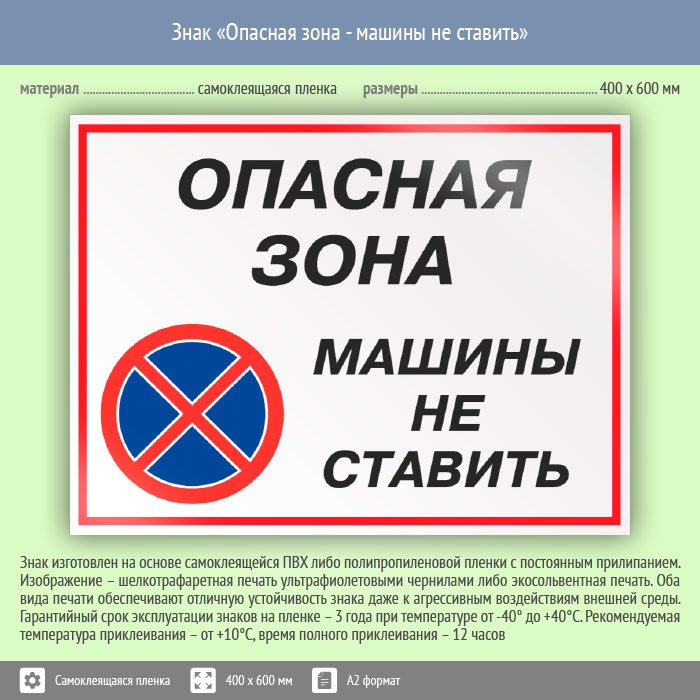 Знак «Опасная зона - машины не ставить», КЗ-32 (пленка, 600х400 мм) в Хотьково купить