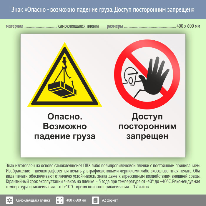 Знак «Опасно - возможно падение груза. Доступ посторонним запрещен», КЗ-33 (пленка, 600х400 мм) в Хотьково купить