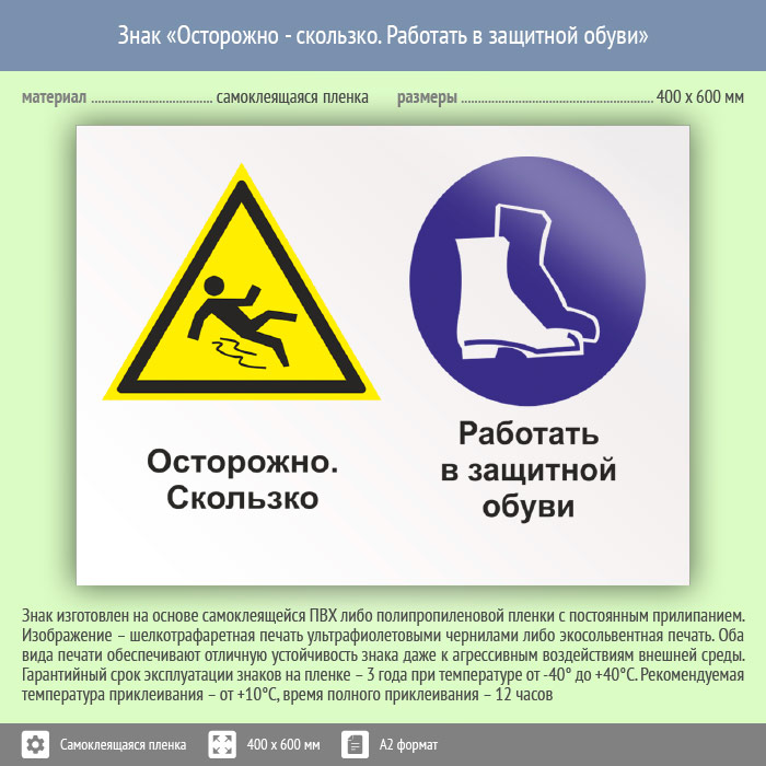 Знак «Осторожно - скользко. Работать в защитной обуви», КЗ-57 (пленка, 600х400 мм) в Хотьково купить