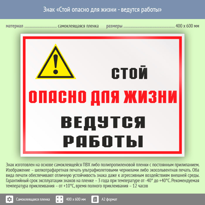 Знак «Стой опасно для жизни - ведутся работы», КЗ-86 (пленка, 600х400 мм) в Хотьково купить