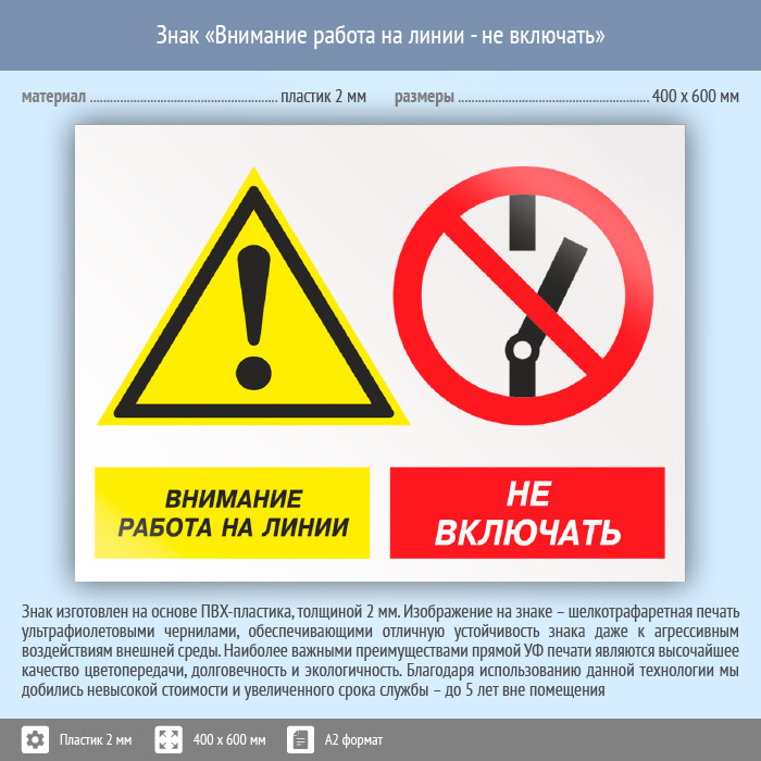 Знак «Внимание работа на линии - не включать», КЗ-16 (пластик, 600х400 мм) в Хотьково купить