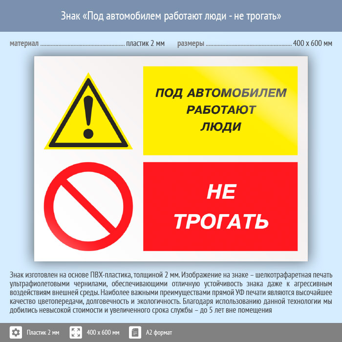 Знак «Под автомобилем работают люди - не трогать», КЗ-66 (пластик, 600х400 мм) в Хотьково купить