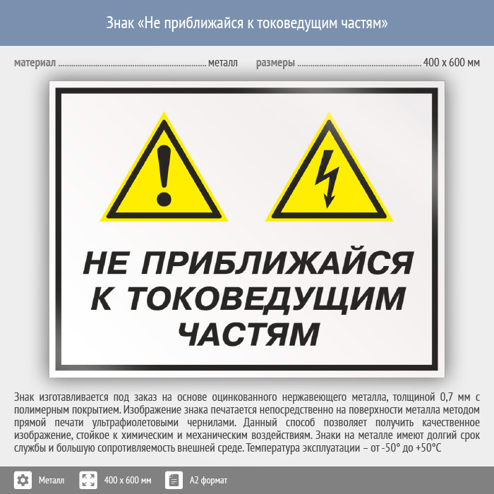 Знак «Не приближайся к токоведущим частям», КЗ-29 (металл, 600х400 мм) в Хотьково купить
