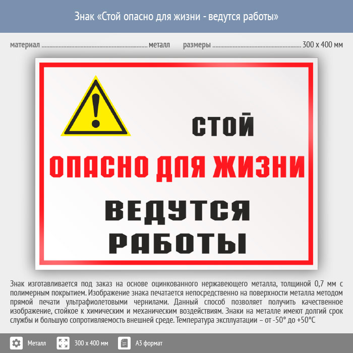 Знак «Стой опасно для жизни - ведутся работы», КЗ-86 (металл, 400х300 мм) в Хотьково купить