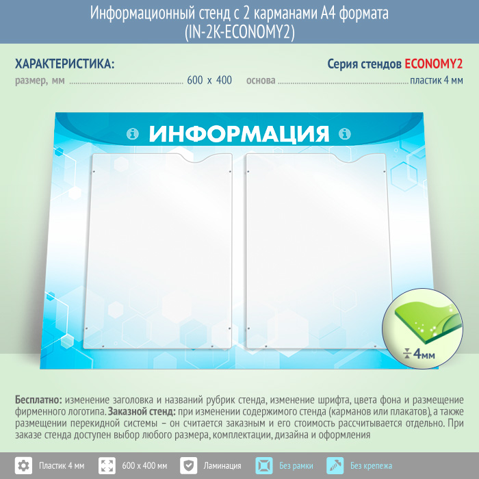 Информационный стенд с 2 карманами А4 формата (IN-2K-ECONOMY2) в Хотьково купить