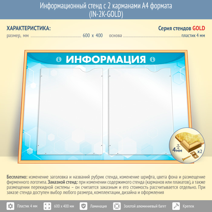 Информационный стенд с 2 карманами А4 формата (IN-2K-GOLD) в Хотьково купить