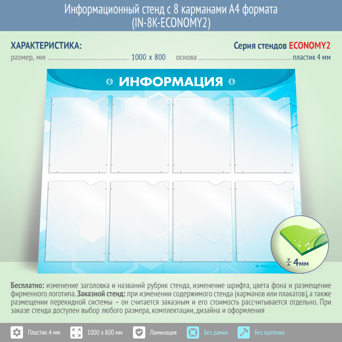 Информационный стенд с 8 карманами А4 формата (IN-8K-ECONOMY2) в Хотьково купить