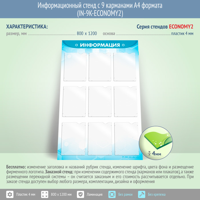 Информационный стенд с 9 карманами А4 формата (IN-9K-ECONOMY2) в Хотьково купить