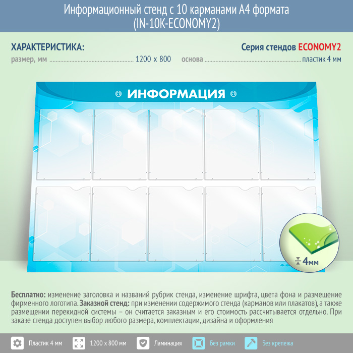 Информационный стенд с 10 карманами А4 формата (IN-10K-ECONOMY2) в Хотьково купить