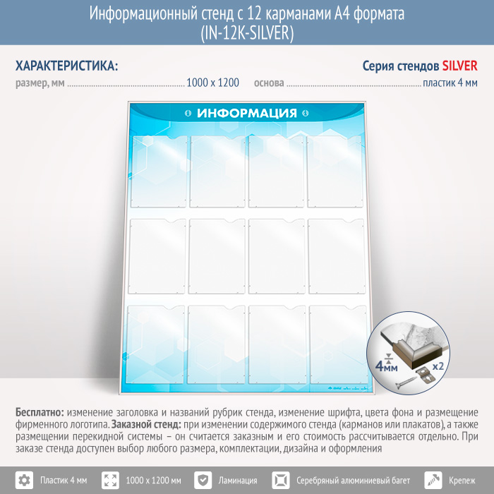 Информационный стенд с 12 карманами А4 формата (IN-12K-SILVER) в Хотьково купить