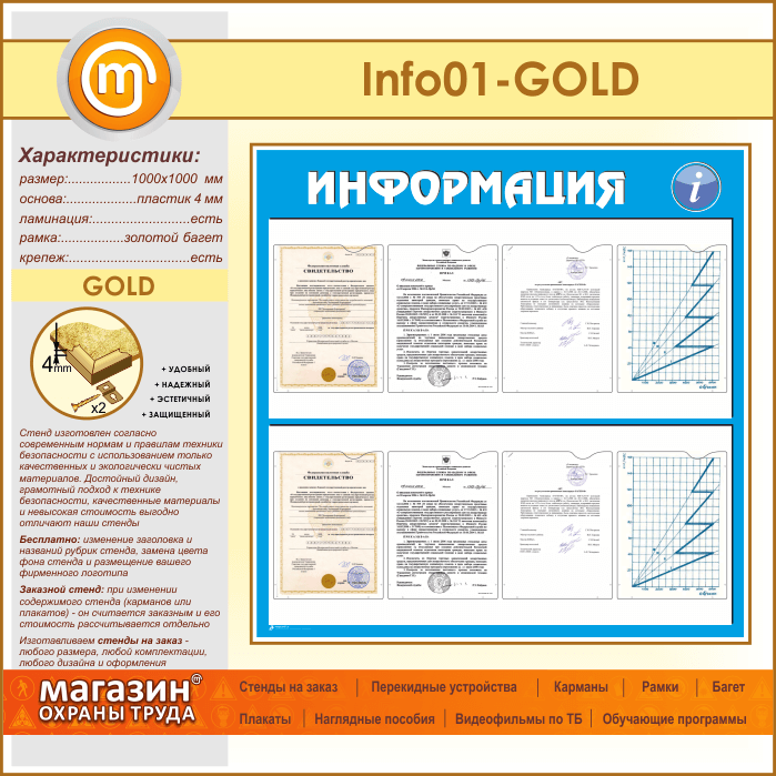 Стенд «Информация» с 8 карманами А4 формата (IN-01-GOLD) в Хотьково купить
