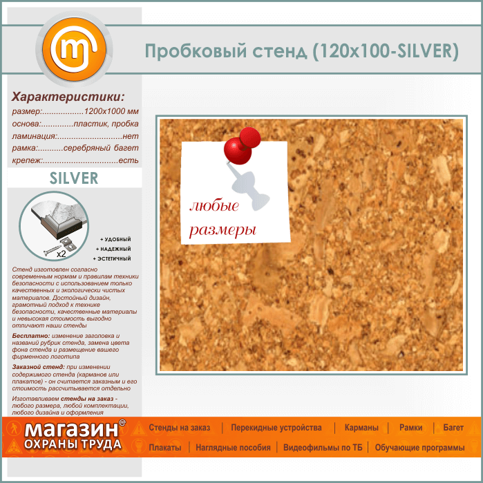 Пробковая доска, 120х100 см (IN-05-SILVER) в Хотьково купить