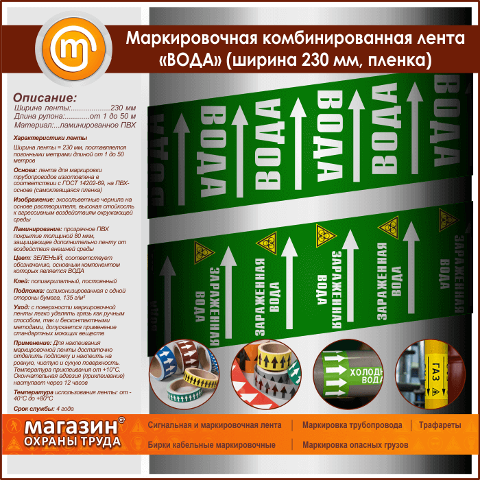Маркировочная комбинированная лента «ВОДА» (ширина 230 мм, самоклеящаяся плёнка с ламинированием) в Хотьково купить