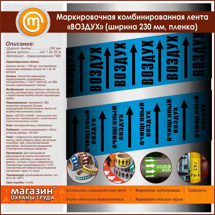 Маркировочная комбинированная лента «ВОЗДУХ» (ширина 230 мм, самоклеящаяся плёнка) в Хотьково купить