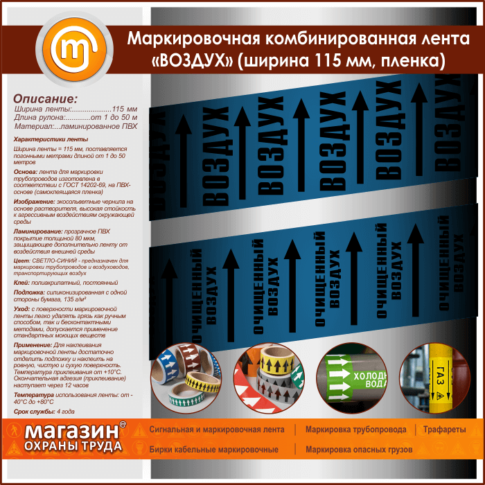 Маркировочная комбинированная лента «ВОЗДУХ» (ширина 115 мм, самоклеящаяся плёнка с ламинированием) в Хотьково купить