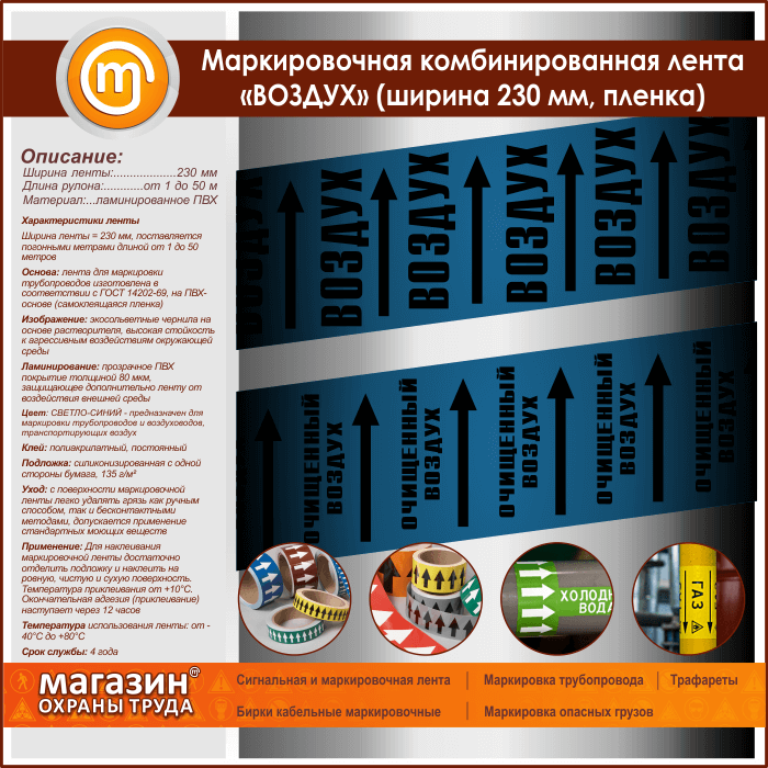 Маркировочная комбинированная лента «ВОЗДУХ» (ширина 230 мм, самоклеящаяся плёнка с ламинированием) в Хотьково купить