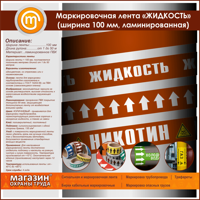 Маркировочная лента «ЖИДКОСТЬ» (ширина 100 мм, самоклеящаяся плёнка) в Хотьково купить