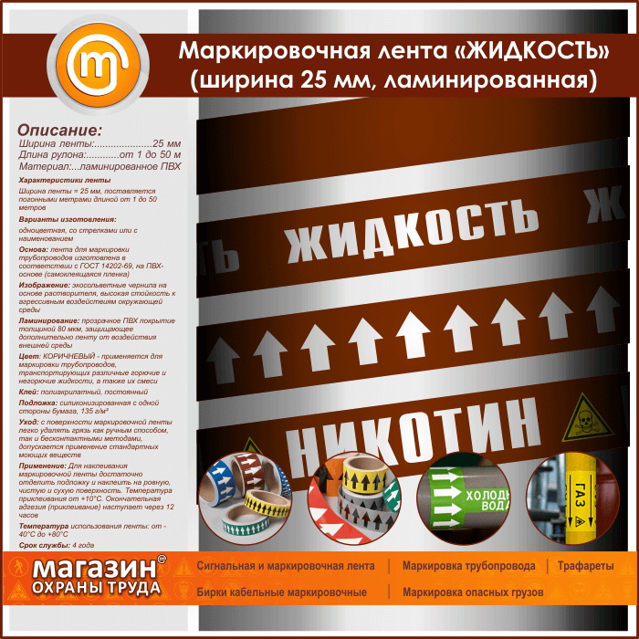 Маркировочная лента «ЖИДКОСТЬ» (ширина 25 мм, самоклеящаяся плёнка с ламинированием) в Хотьково купить